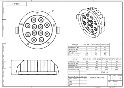 Код изделия Габаритные размеры (ДхВ), мм Мощность, Вт Световой поток, Лм Напряжение, В