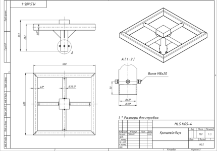 Код изделия Вынос, мм Высота изделия (L), мм Масса, кг Материал Покрытие изделия Кол-во мест для установки световых приборов