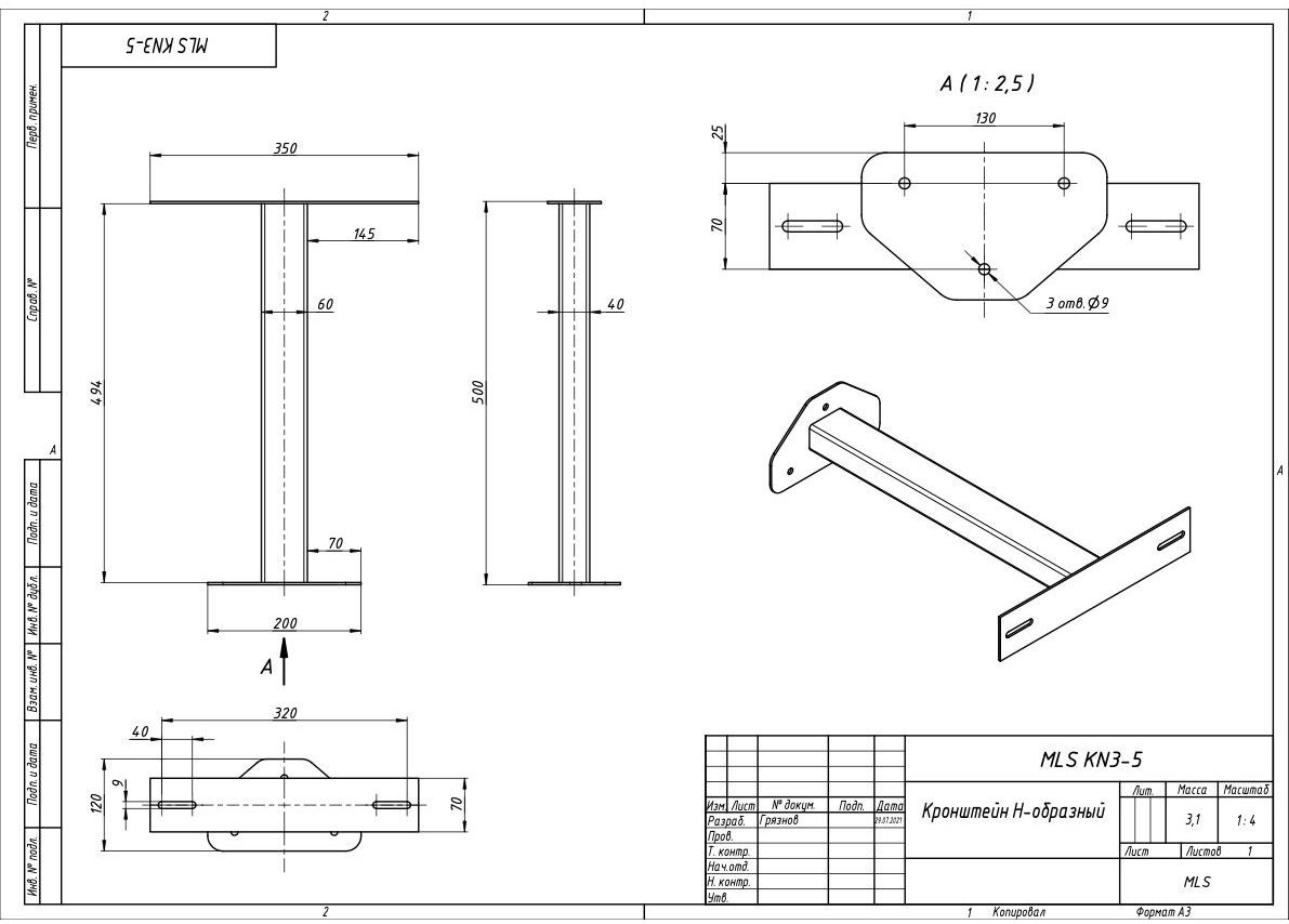 | Чертёж MLS KN3-5 Кронштейн Н-образный |