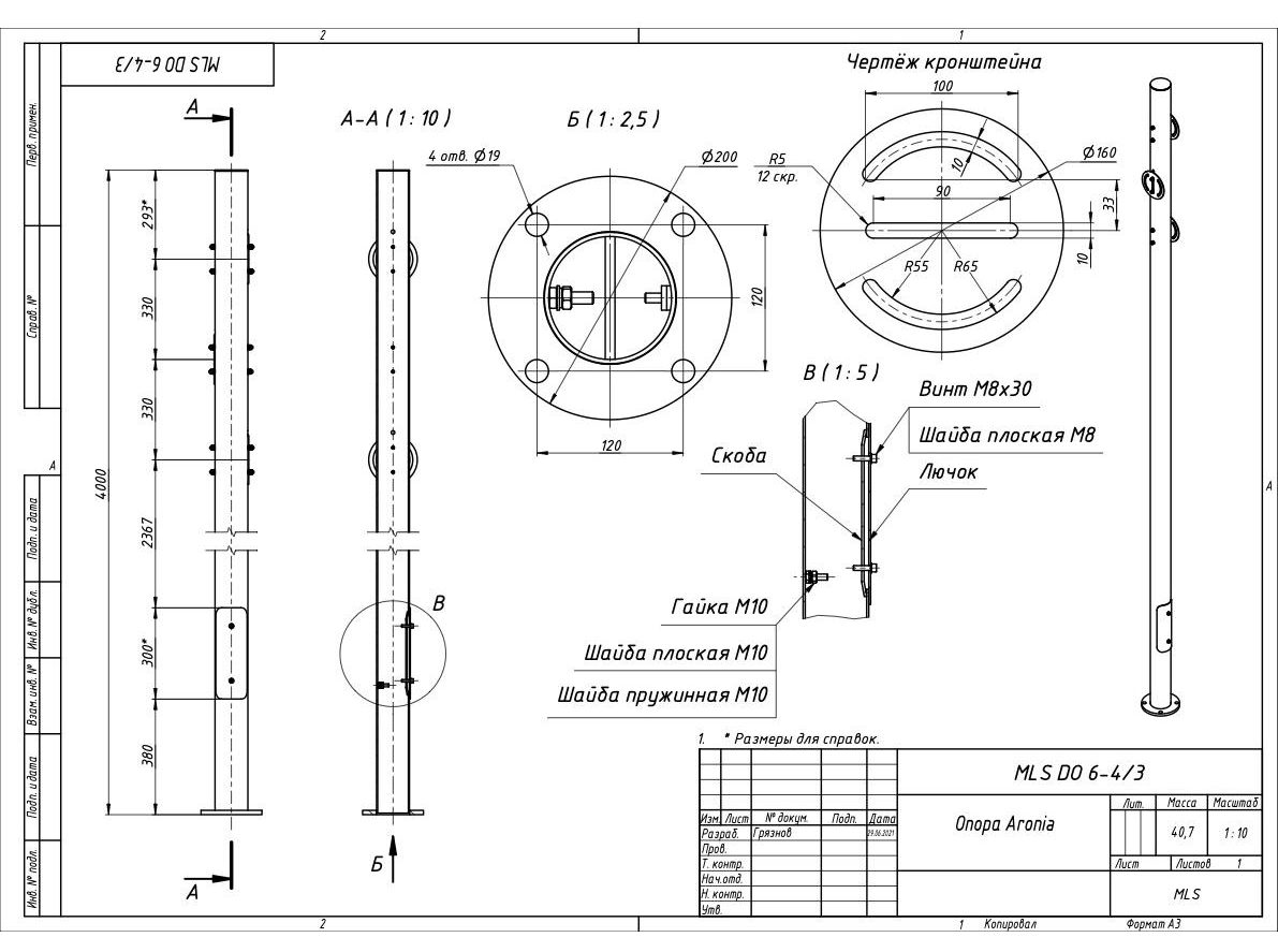 | Чертёж MLS DO-6-4-3 Опора Aronia |