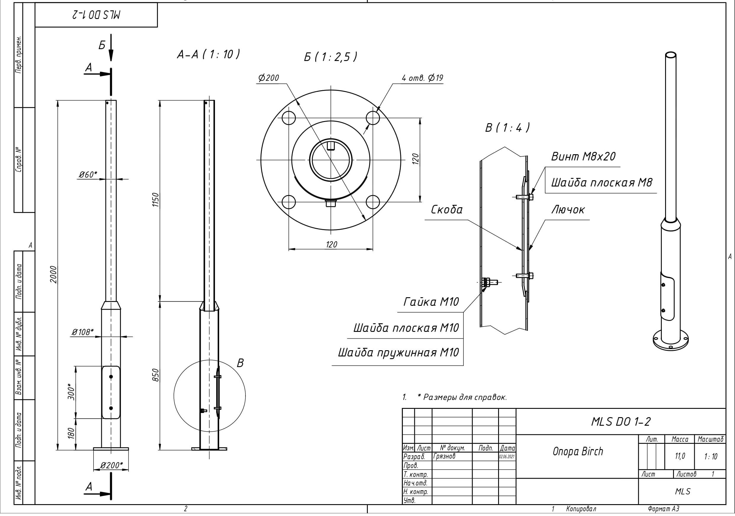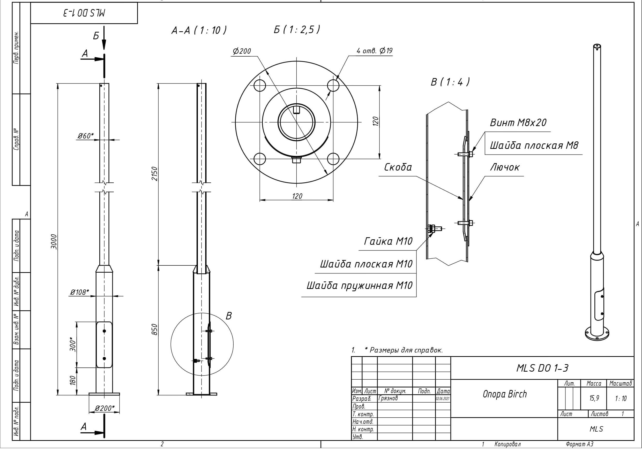 | Чертёж MLS DO 1-3 Опора Birch |
