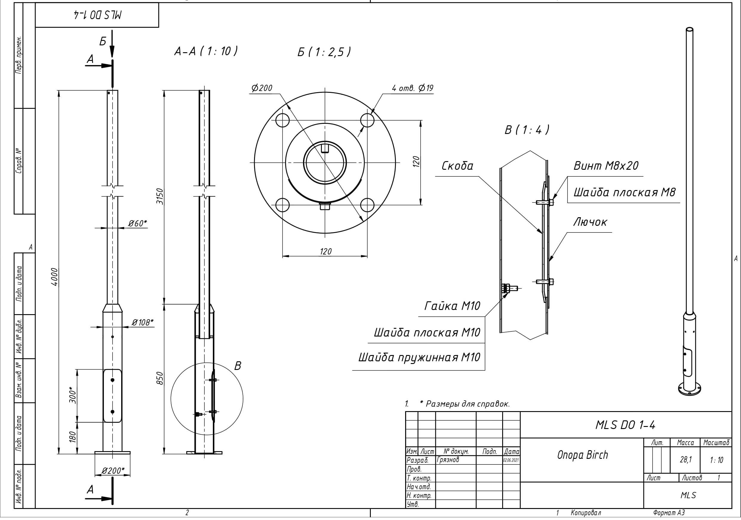 | Чертёж MLS DO 1-4 Опора Birch |