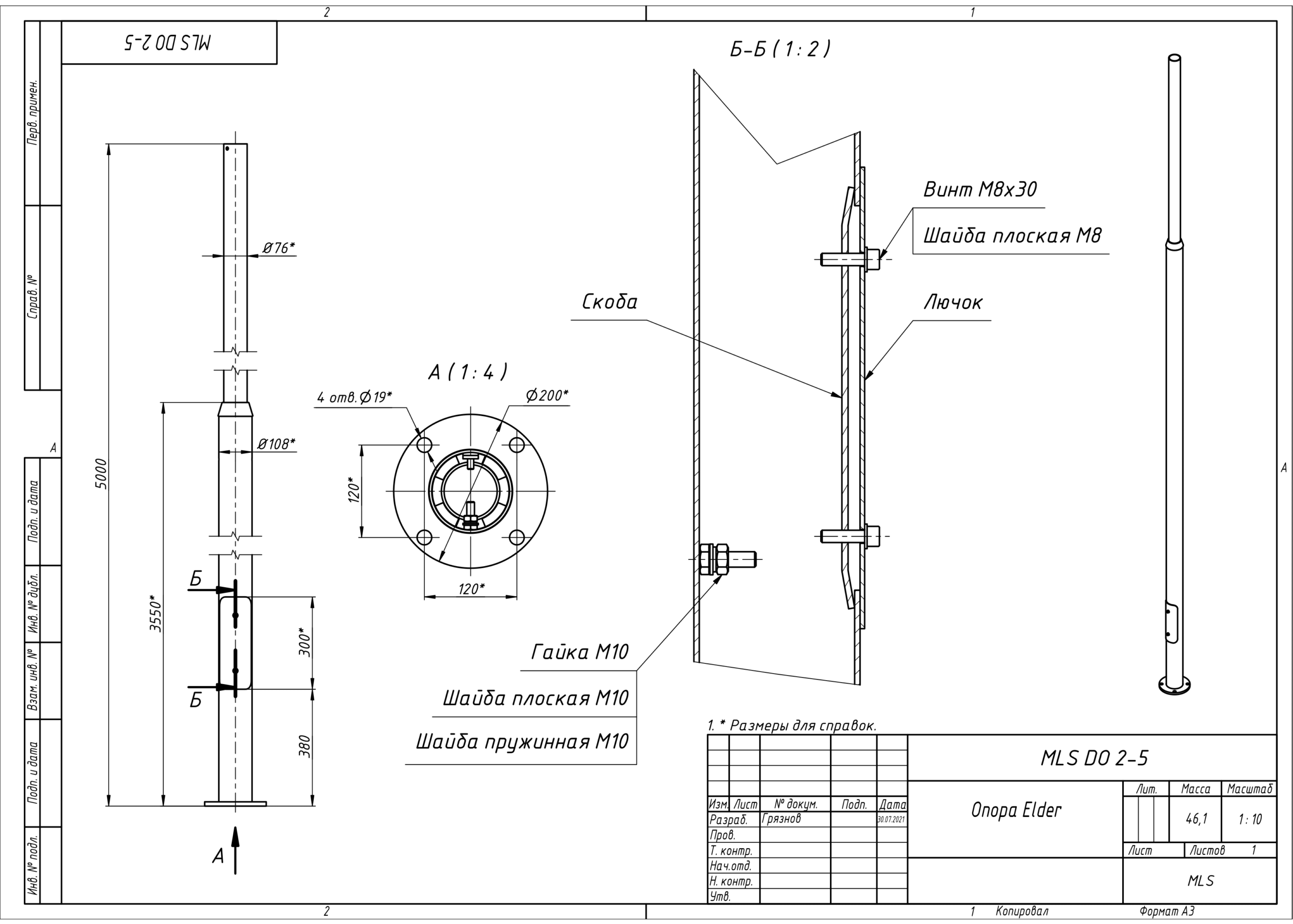 | Чертёж MLS DO 2-5 Опора Elder |