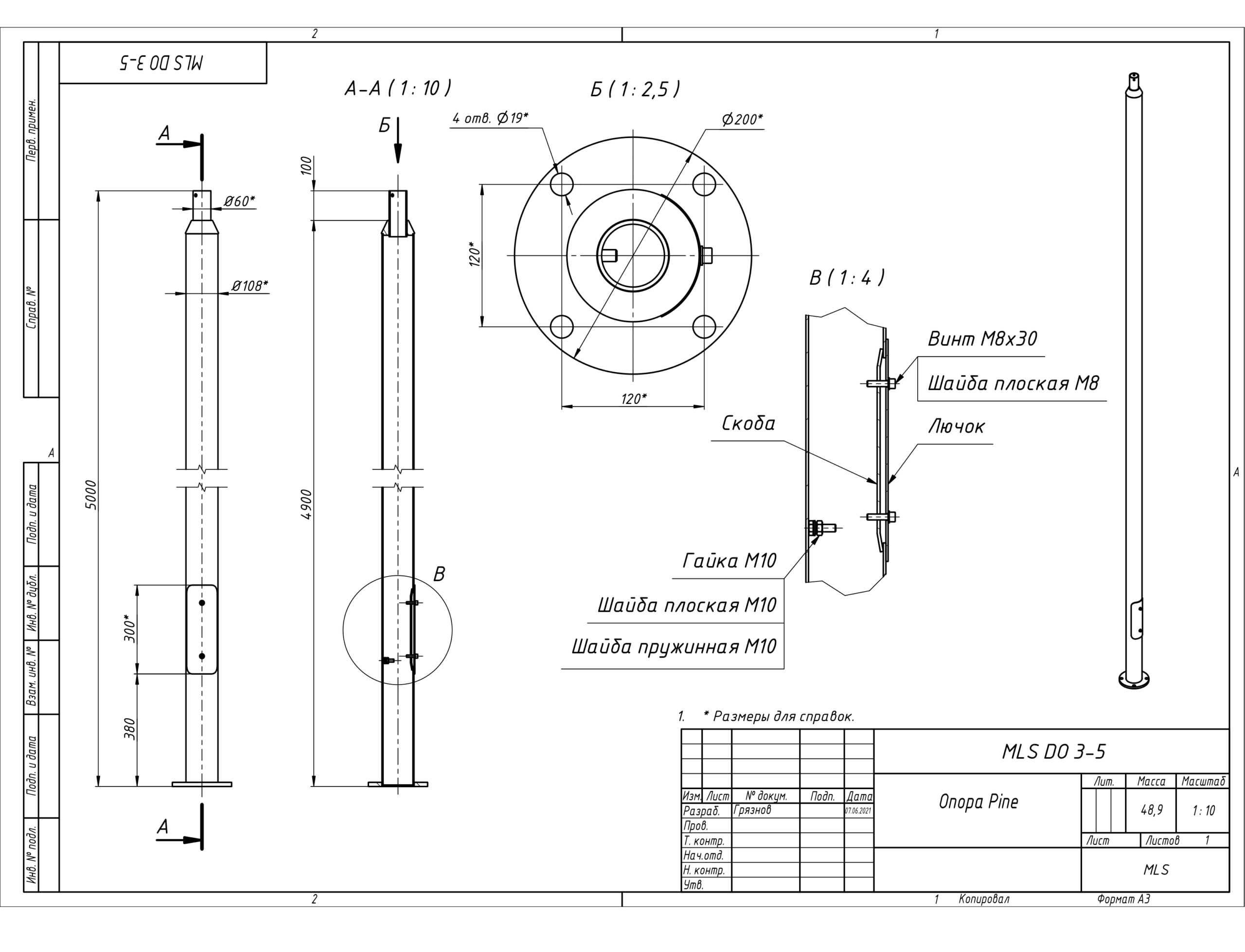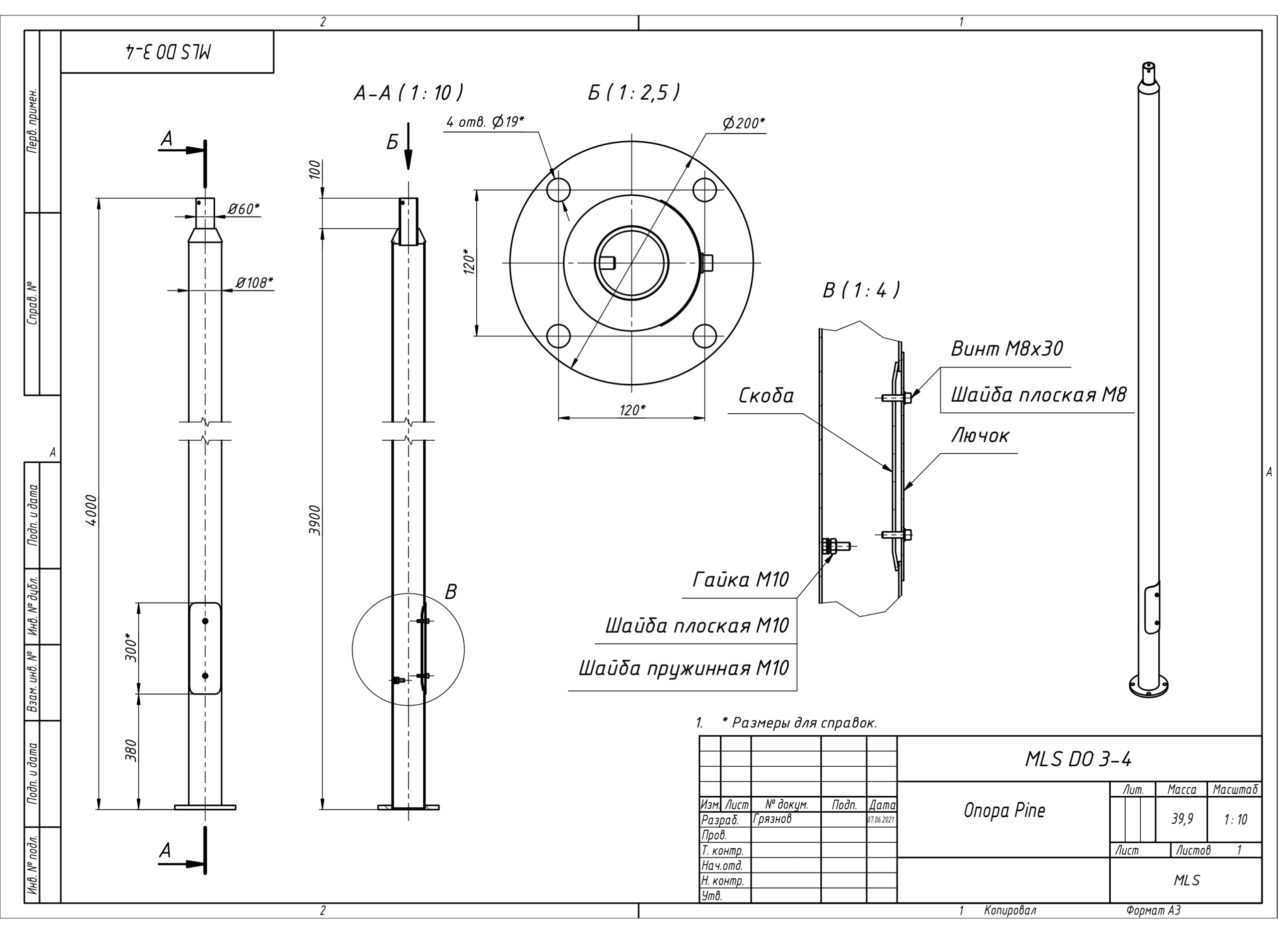 | Чертёж MLS DO 3-4 Опора Pine |