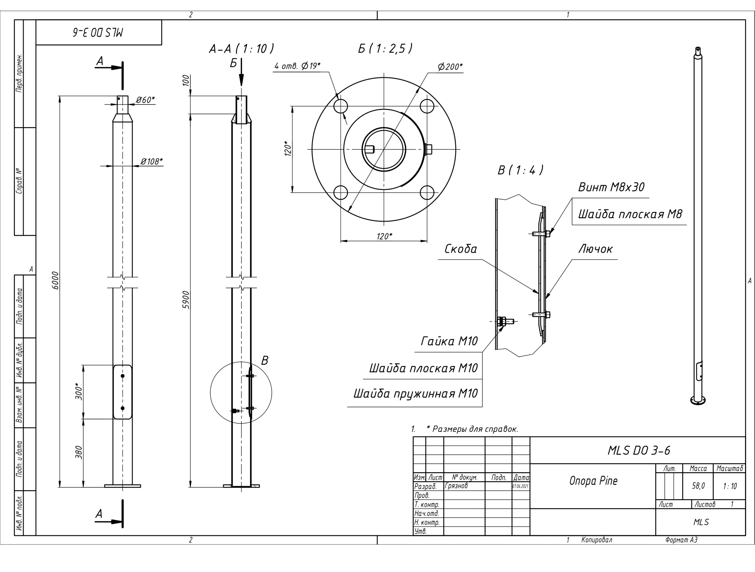 | Чертёж MLS DO 3-6 Опора Pine |