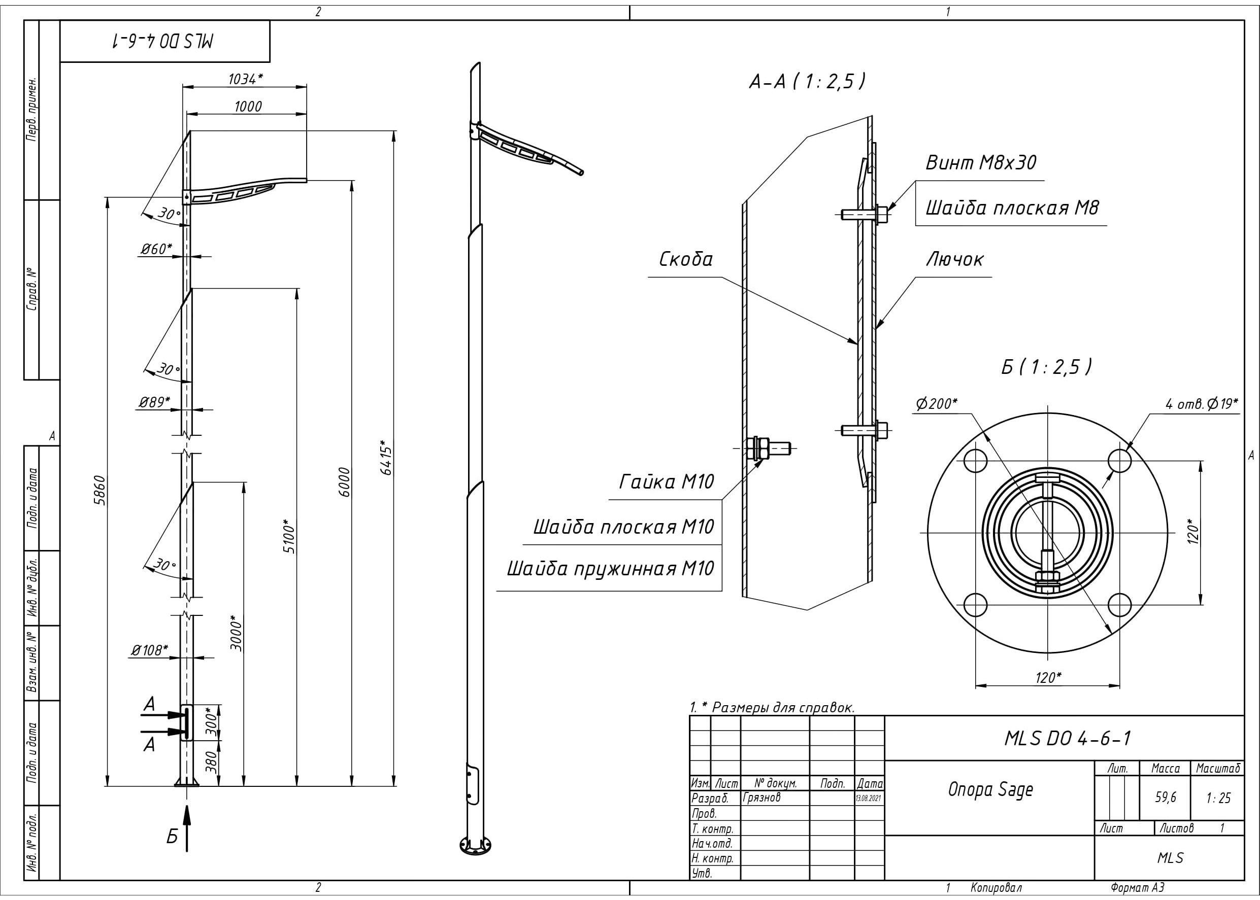 | Чертёж MLS DO 4-6-1 Опора Sage |