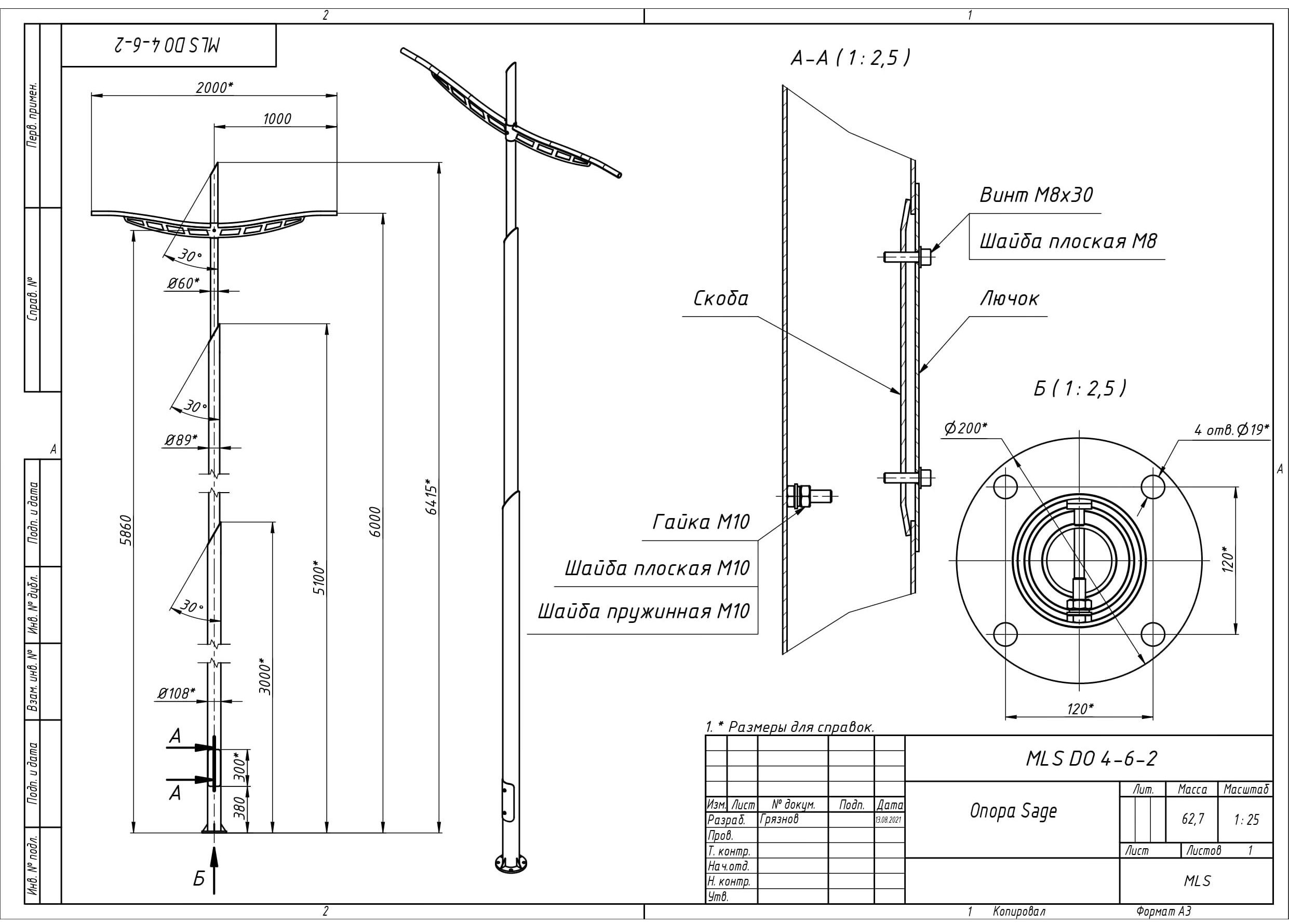 | Чертёж MLS DO 4-6-2 Опора Sage |