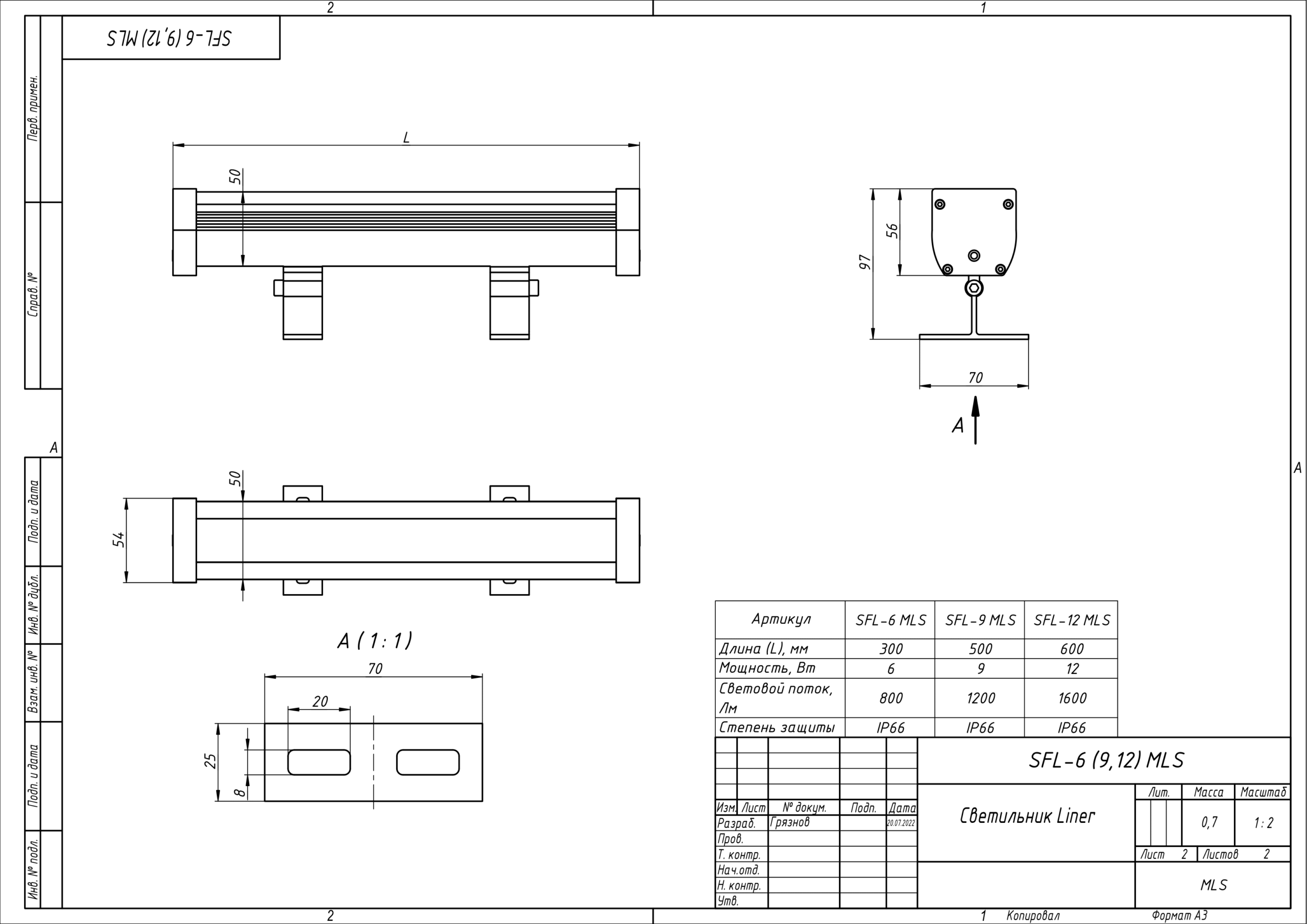 | Чертёж SFL-6 (9,12) MLS Светильник Liner |
