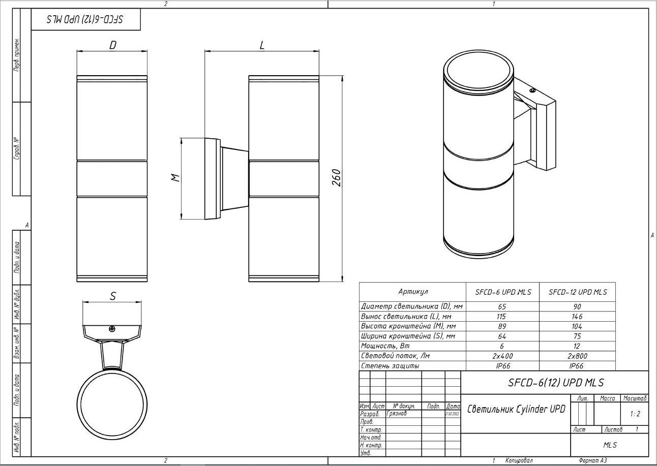| Чертёж Светильник Cylinder SFC-3(6) MLS |