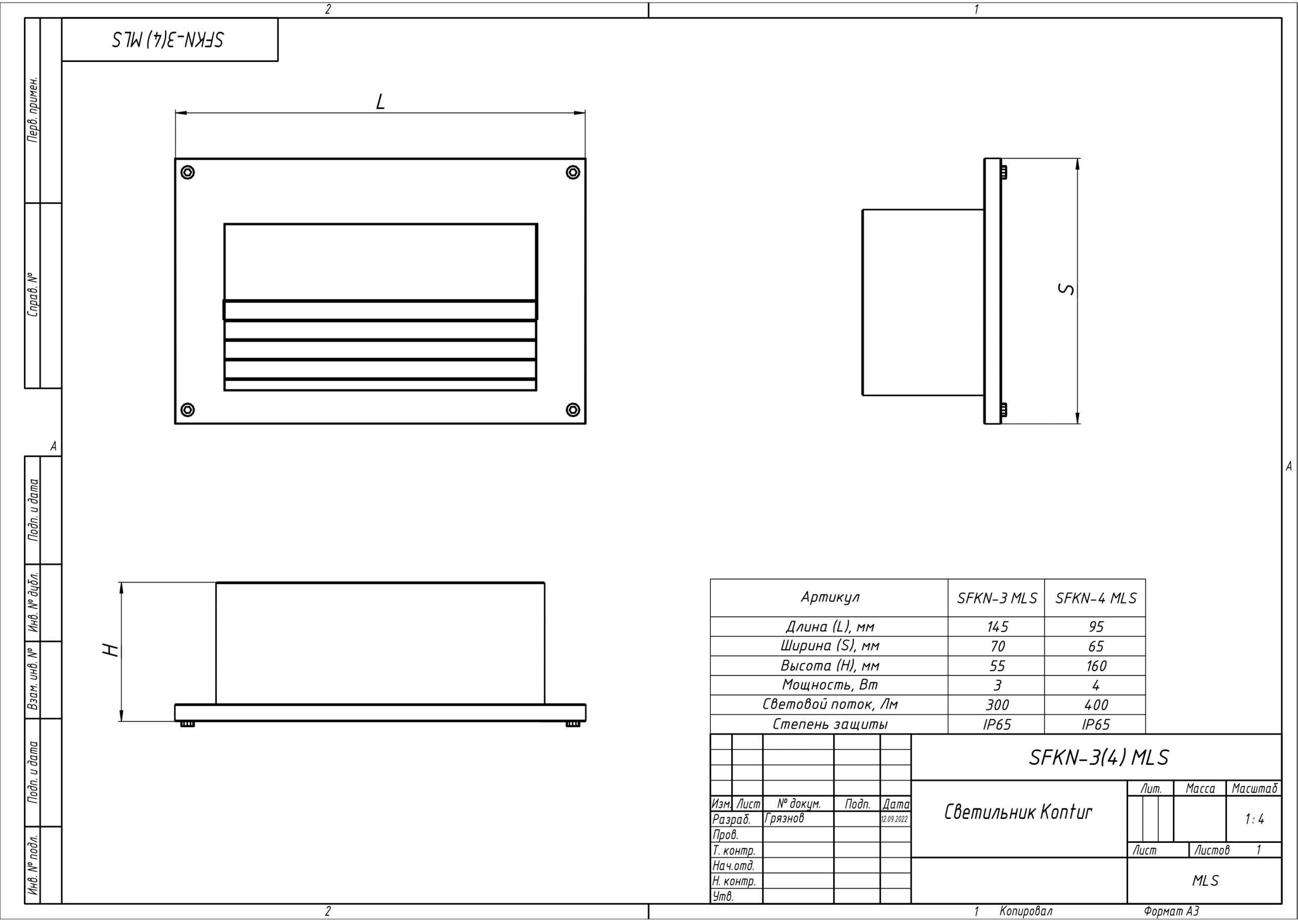 | Чертёж Светильник Kontur SFKN-3(4) MLS |