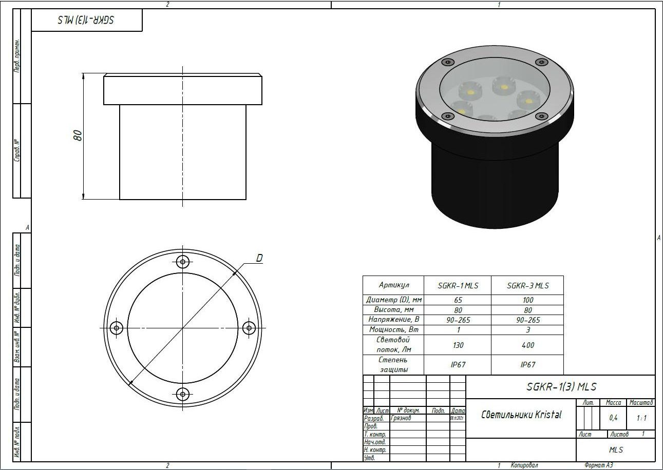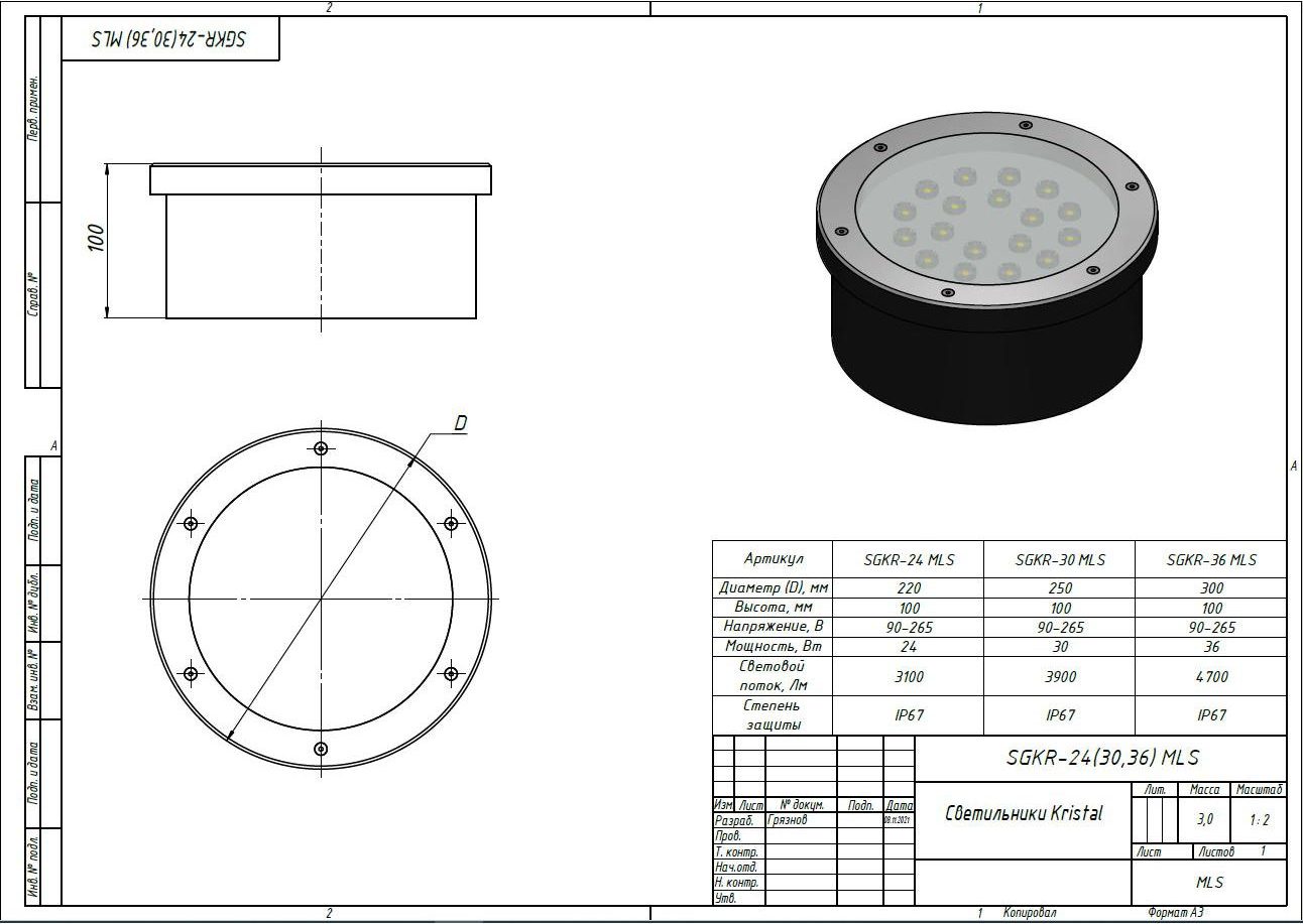 | Чертёж Светильники Kristal SGKR-1(3) MLS |