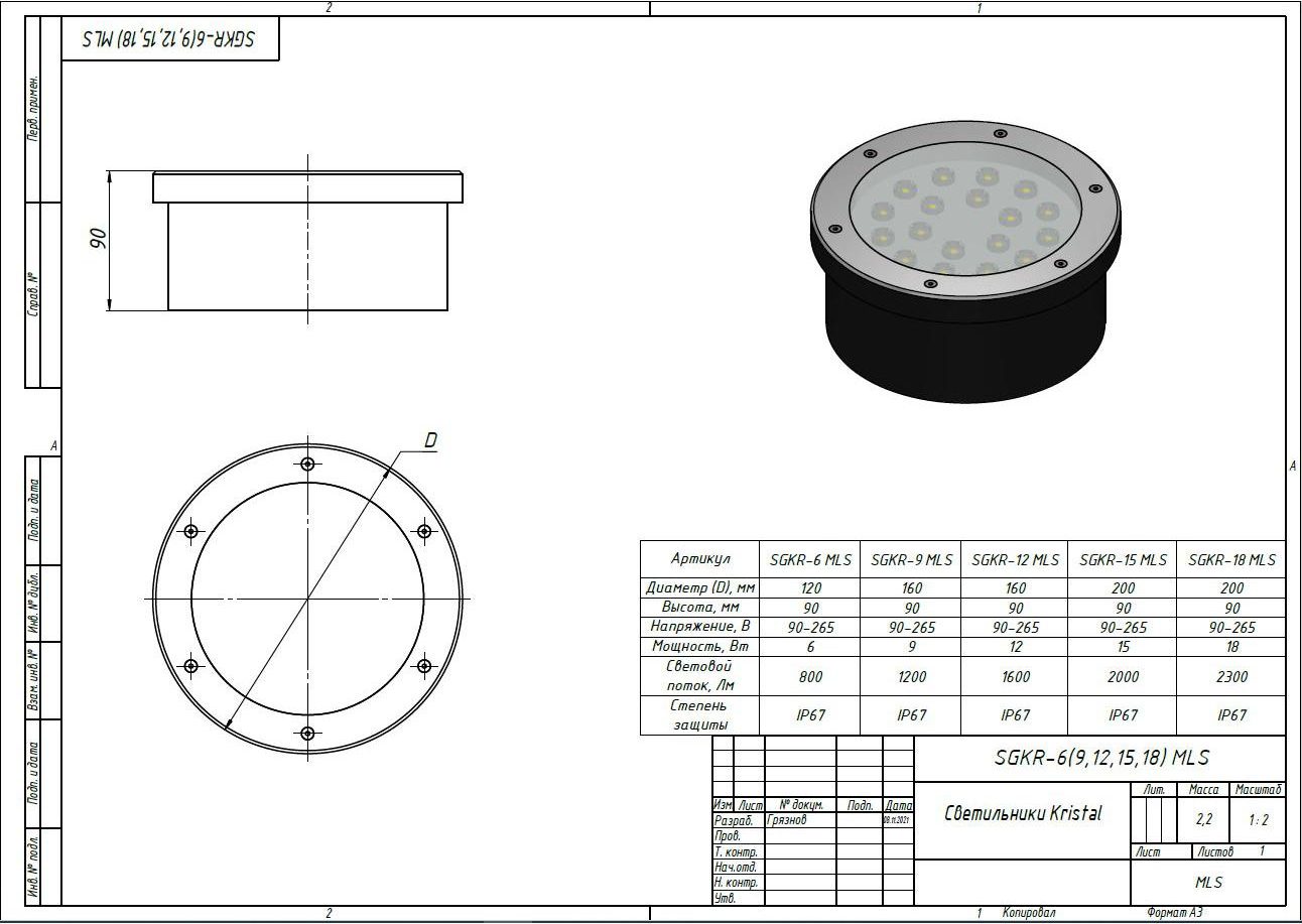 | SGKR-6 PV MLS | ⌀160х160 | 6 | 800 | 90-265 |