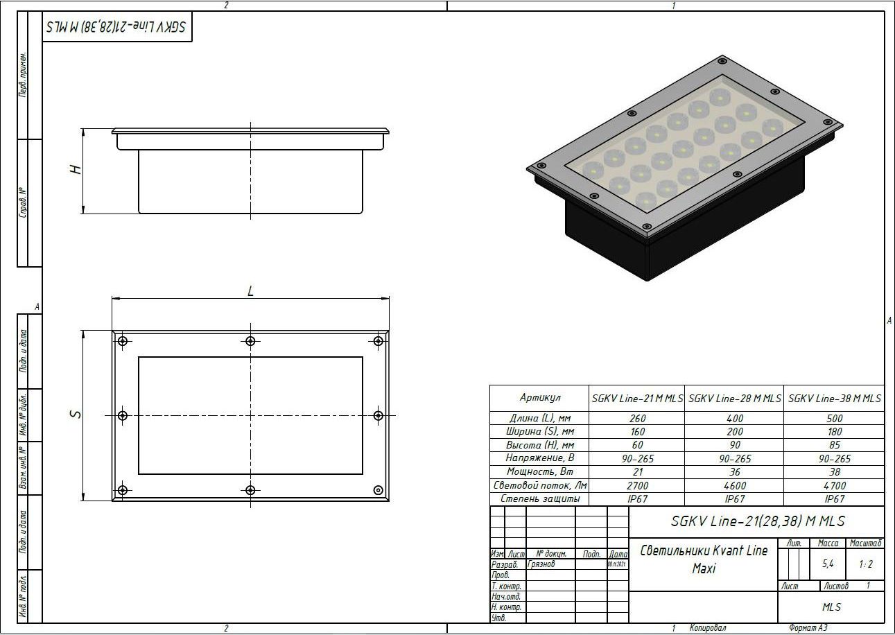 | Чертёж Светильники Kvant Line Maxi SGKV Line-21(28,38) М MLS |