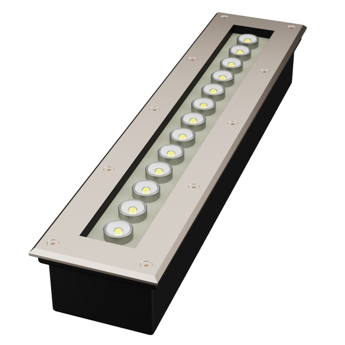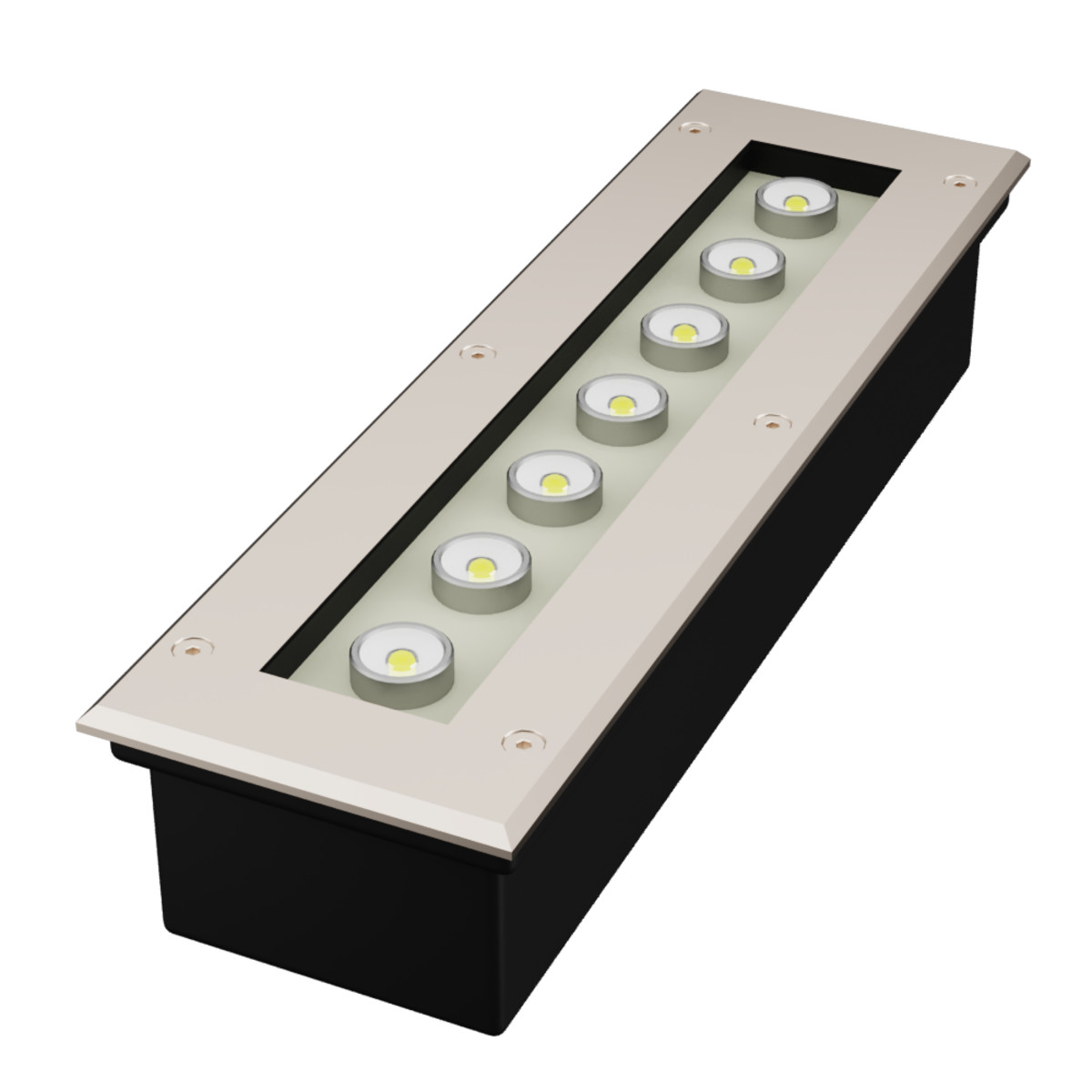 Светильник Kvant Line погружается и встраивается в подготовленное углубление, выполненное в грунте (газоне), брусчатке, тротуарной плитке или в отмостке.