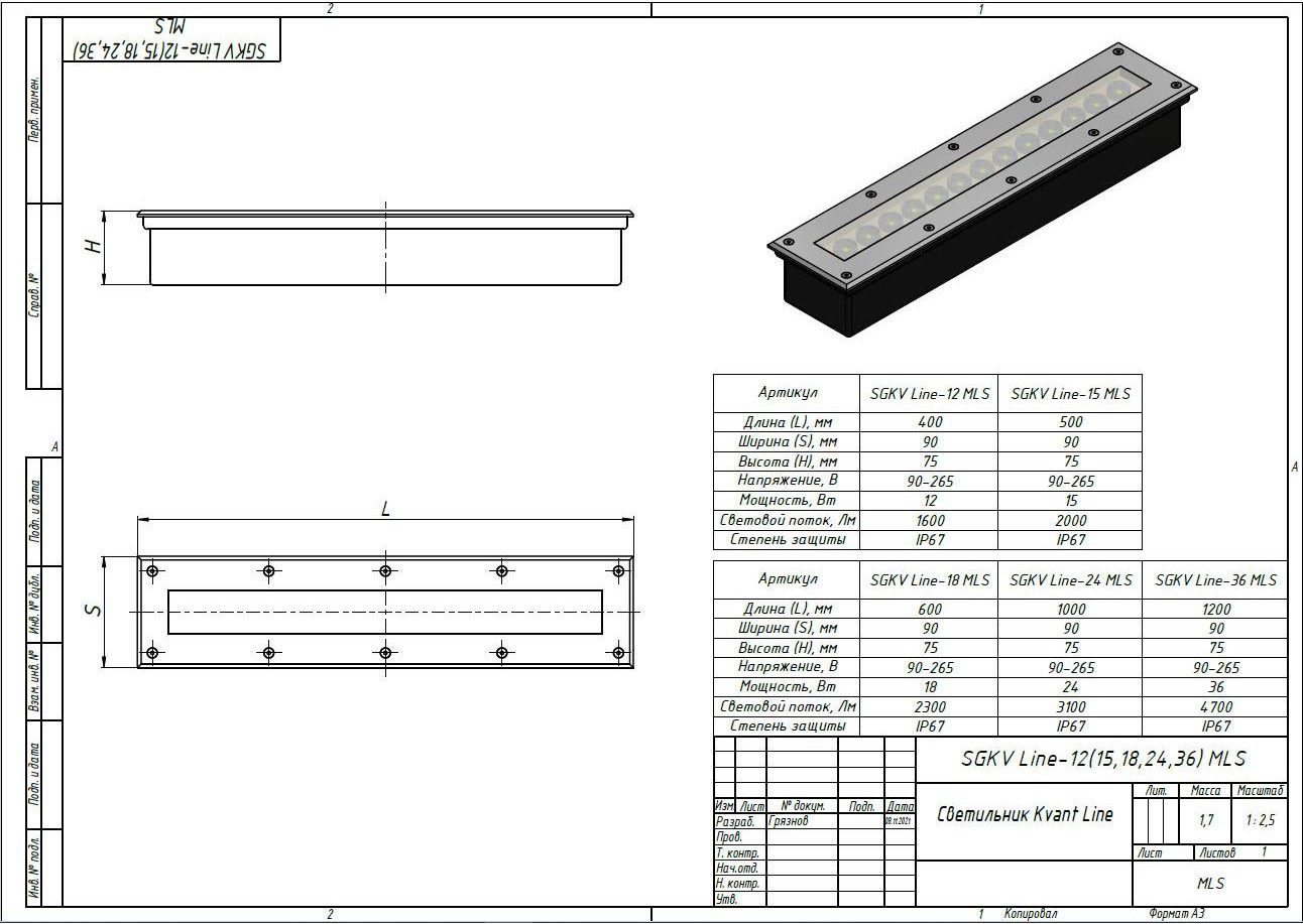 | Чертёж SGKV Line-12(15,18,24,36) MLS Светильник Kvant Line |