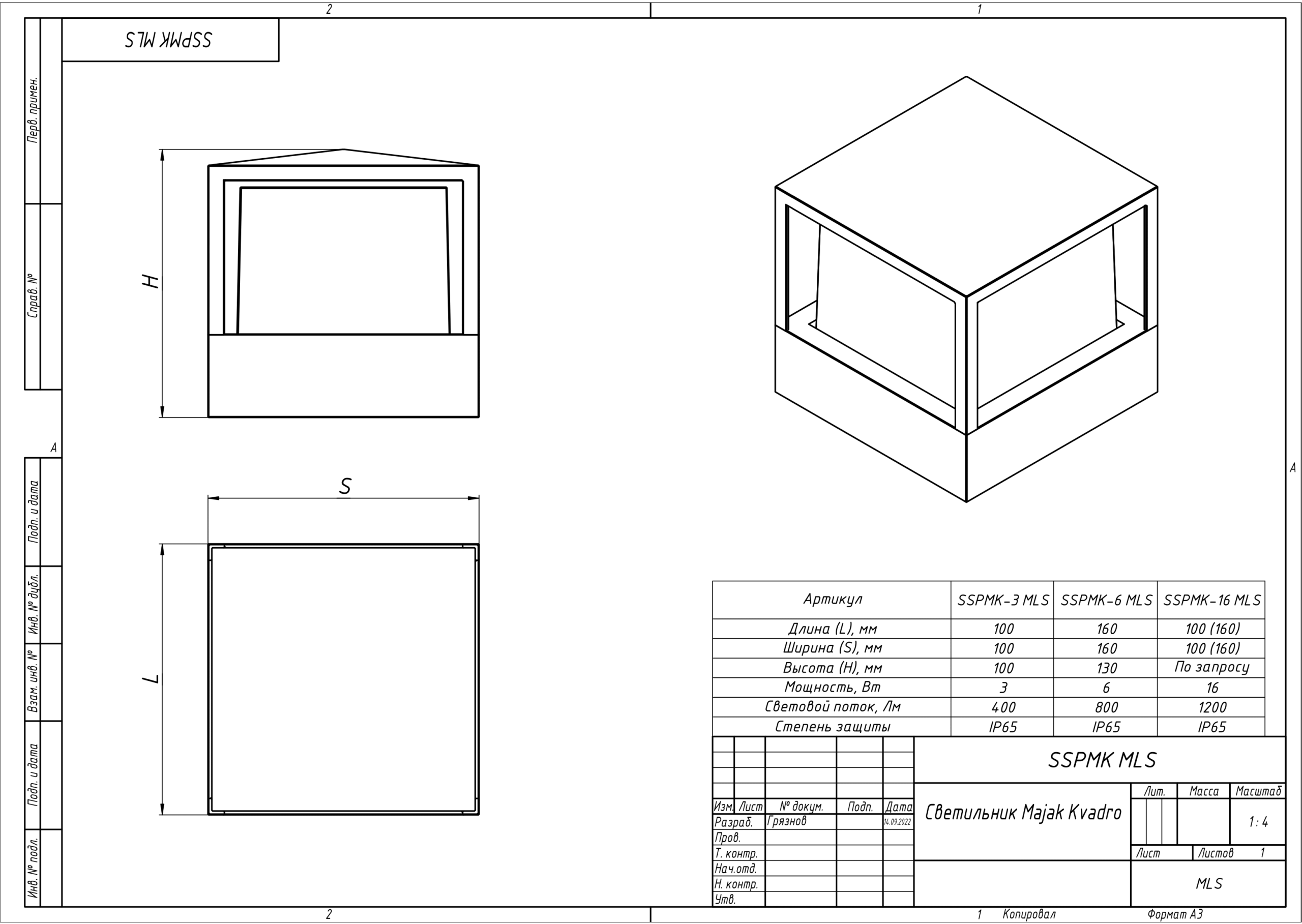 | Чертёж Светильник Majak Kvadro SSPMK MLS |